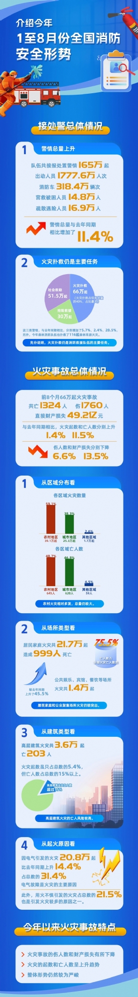 一圖讀懂 | 今年1至8月份全國消防安全形勢