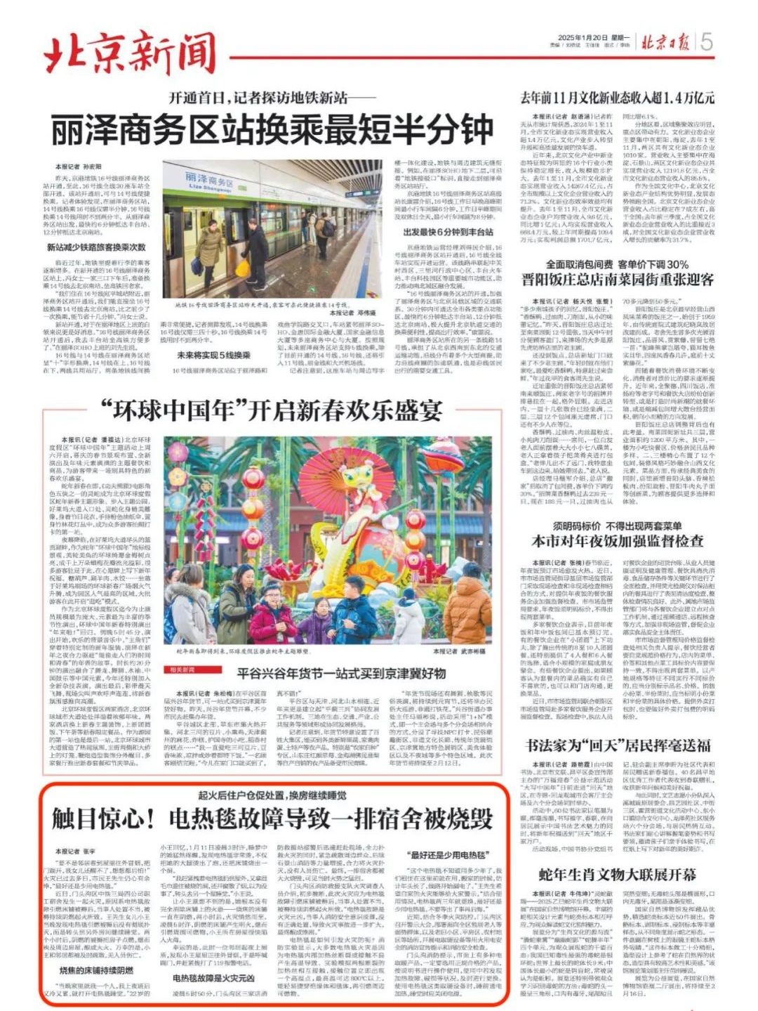 1月20日,北京日報(bào)報(bào)道新聞《觸目驚心!電熱毯故障導(dǎo)致一排宿舍被燒毀》。