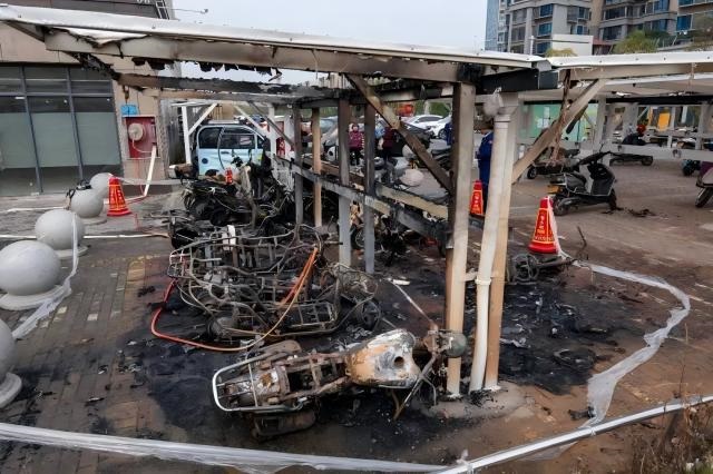 據(jù)現(xiàn)場初步統(tǒng)計,共造成16輛電動自行車和1輛摩托車被燒損。