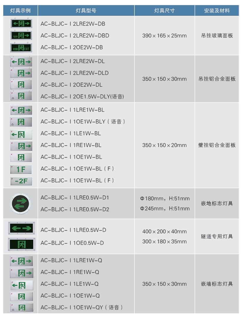 ■ 應(yīng)急標(biāo)志類燈具匯總表