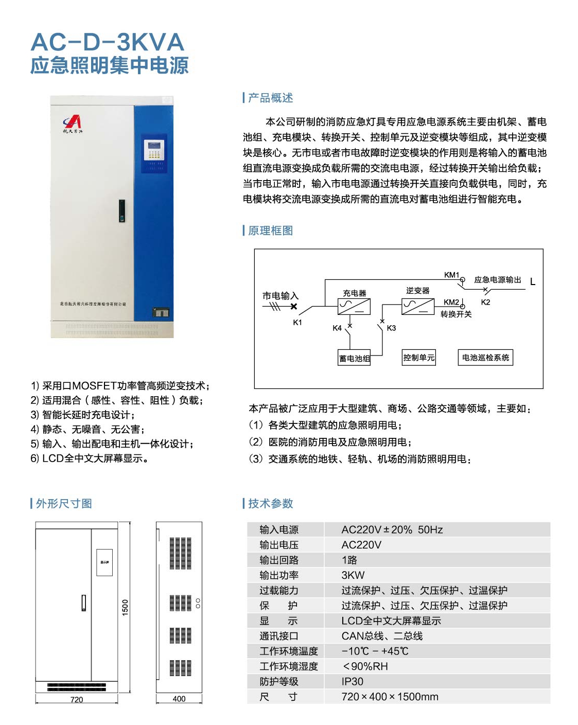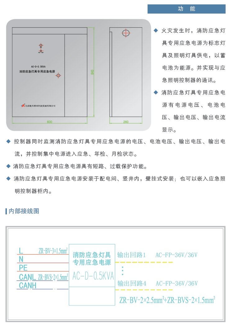 ■ AC-D-0.5KVA/1KVA消防應(yīng)急燈具專用電源外型尺寸、功能及內(nèi)部接線圖