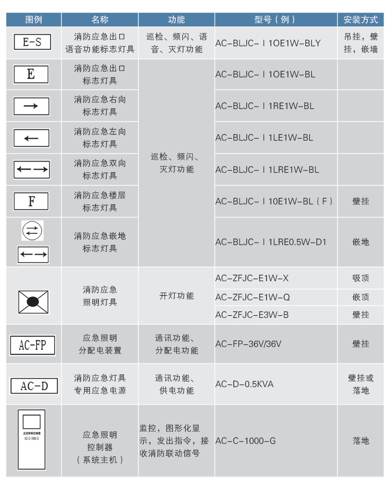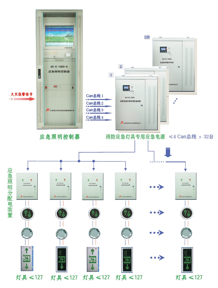 系統(tǒng)產(chǎn)品由應(yīng)急照明控制器、消防應(yīng)急燈具專用應(yīng)急電源、應(yīng)急照明分配電裝置、消防應(yīng)急照明、消防應(yīng)急標(biāo)志燈具四部分組成。照明燈具指示系統(tǒng)有壁掛式、吸頂式、嵌頂式等,標(biāo)志燈具指示系統(tǒng)有壁掛式、吊掛式、嵌墻式、嵌地式等組成。